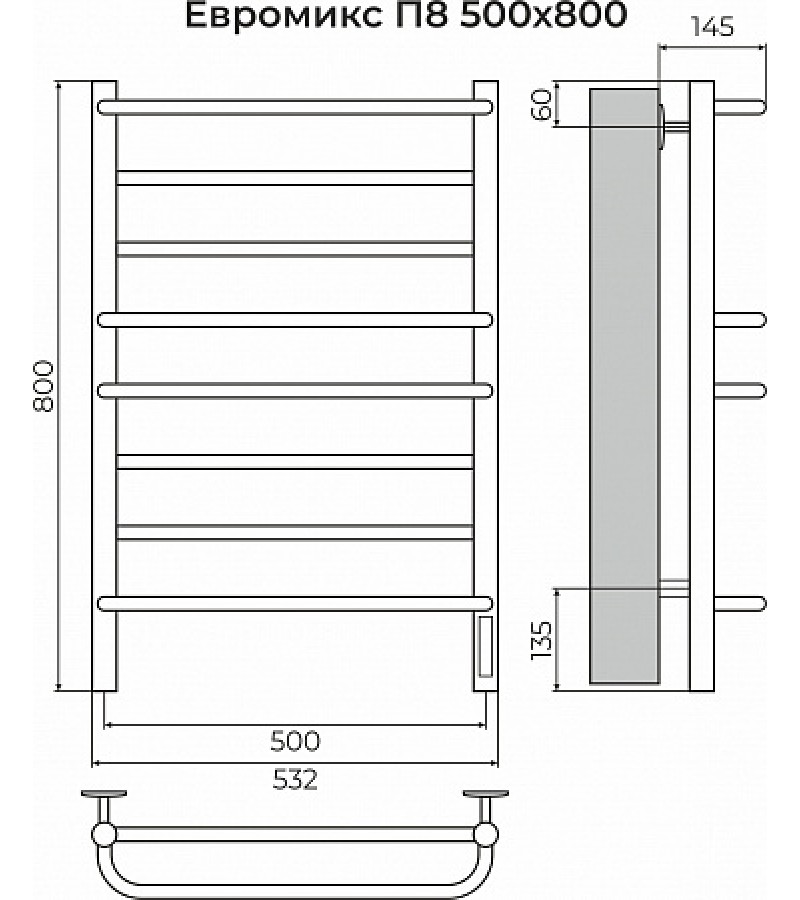 პირსახოცის ელექტრო საშრობი Евромикс П8 წარმოადგენს ფუნქციურ საკიდს და საშრობს აბაზანისთვის. შავი მოდელი Евромикс П8 წარმოადგენს საშრობს ზომით 500х800 მმ. აქვს დიმერი, რაც არის კომფორტული ტემპერატურის რეგულირების ფუნქცია.