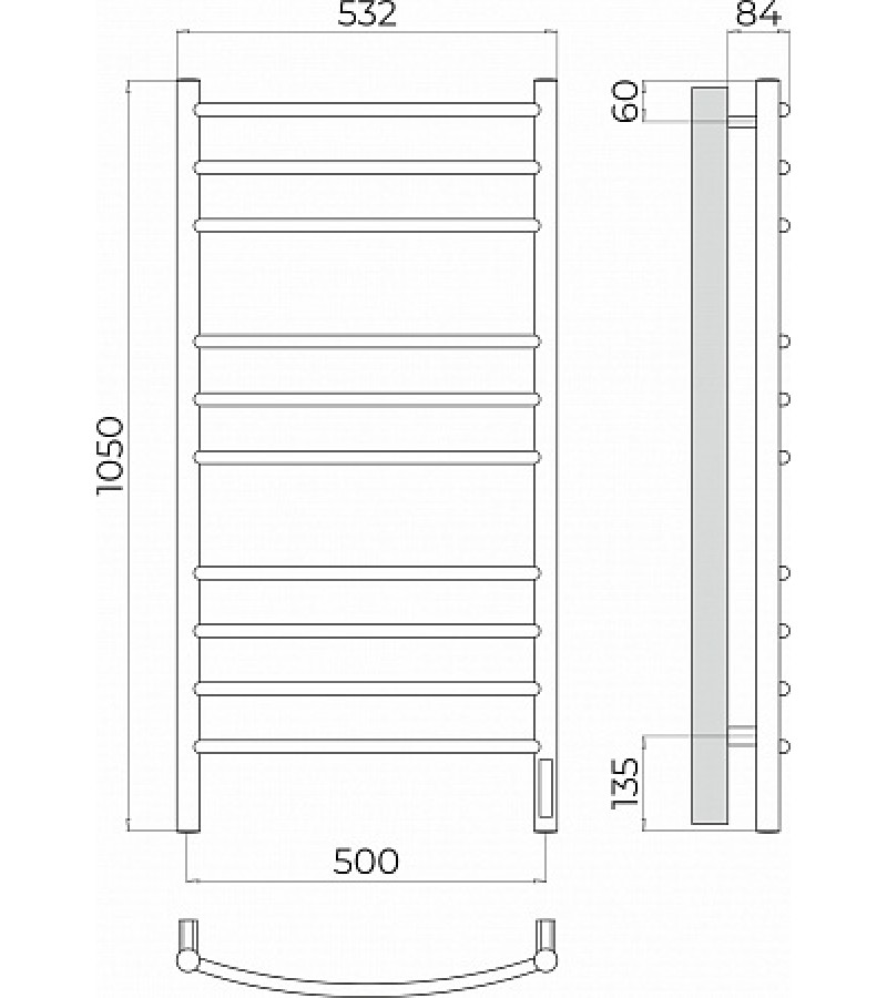 გსურთ სხვა ზომის საშრობი? მაშინ იხილეთ: ელექტრო საშრობი დიმერით Аврора П6 300х650 ქრომი მწარ. TERMINUS